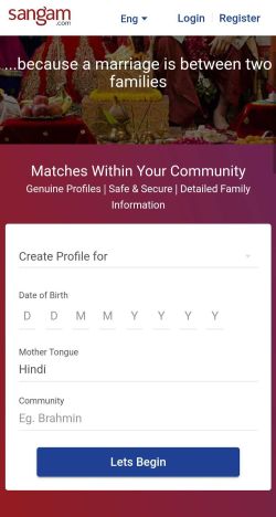 Since it is a matchmaking site for singles looking for a person they can marry, it is highly encouraged that you join Sangam as an eligible single. True, males outnumber the females by quite a margin, but the process is not first come first serve, or similar. Since users are aiming to marry, they interact and screen as many members as they can carry.